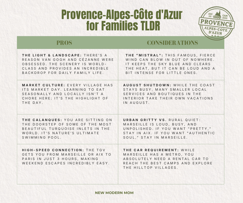 Air Conditioning: Provence gets hot. You must verify that your rental has A/C, especially in Marseille where the stone buildings trap the heat.