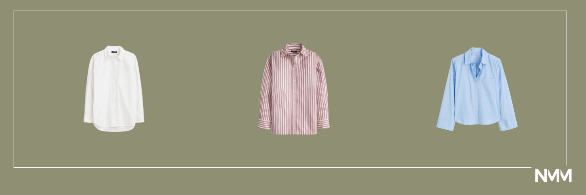Tops: White button down, Red stripe button down, Pointelle Tee, Deep red tank